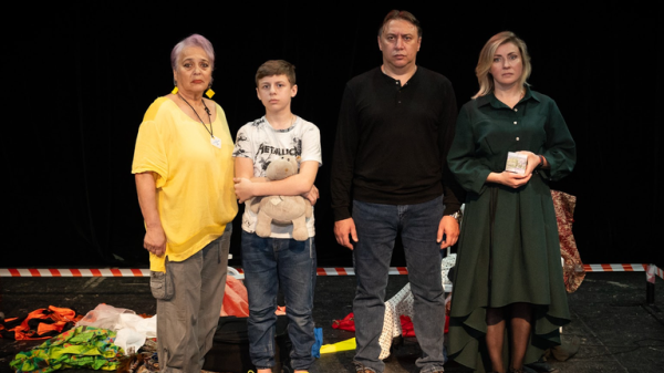 The play’s actors want to show that despite the destruction of the building, Mariupol’s theatre is still alive.