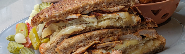 - 1 fresh boneless turkey breast, 2 ½-3 pounds¼ cup Turkish Spice Blend (see above) Non-aerosol olive oil spray Salt and pepper¾ cup sour cream¼ cup ketchup¼ cup relish2-4 tablespoons sriracha, to taste (medium to spicy) 1 jar sauerkraut with caraway and cumin or add 1 teaspoon each to 1 pound sauerkraut8 slices quality seeded rye bread, lightly buttered on one side8 slices mozzarella cheese or muenster cheese or Swiss cheese