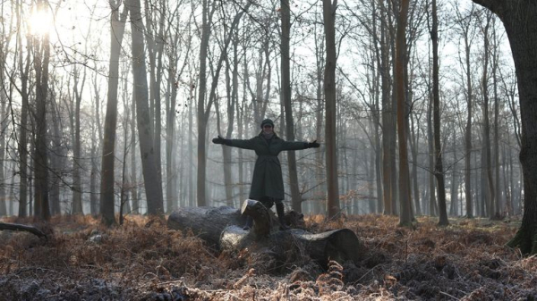 In the photo, Kate is seen standing on a fallen tree trunk in the woods with open arms and the royal looking towards the camera.