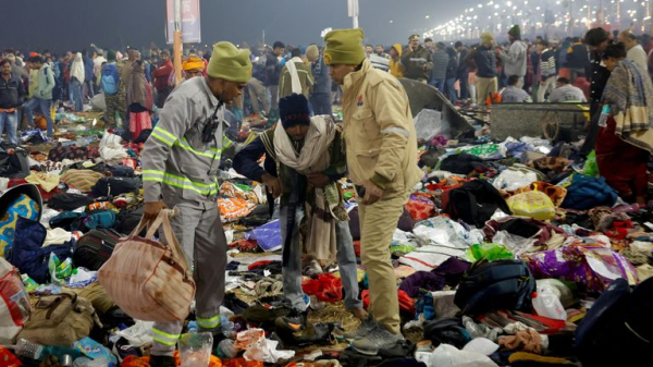 Images from the scene in the city of Prayagraj, in Uttar Pradesh state, show bodies being stretchered away and rescuers helping those who were hurt.