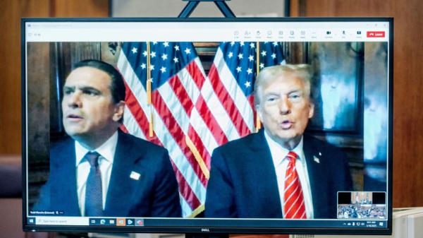 He dialled into the court sentencing on a video call, a president-in-waiting, to rail against it.