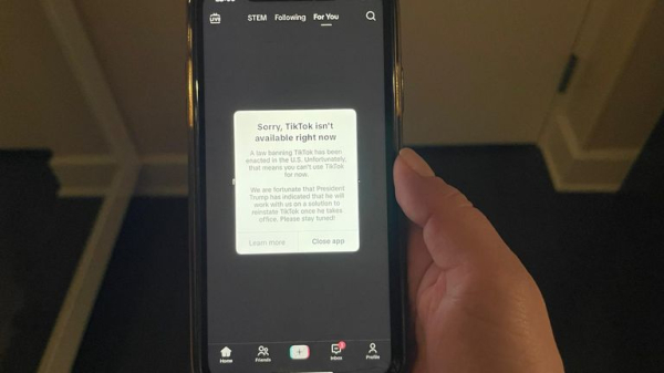 “A law banning TikTok has been enacted in the US. Unfortunately that means you can’t use TikTok for now,” the message in the app being used by US users reads.